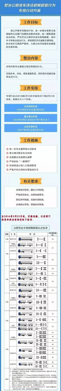 重點整治階段:(2016年9月21日至2017年7月31日)。集中開展專項整治,嚴厲查處貨車違法超限超載等違法行為。
